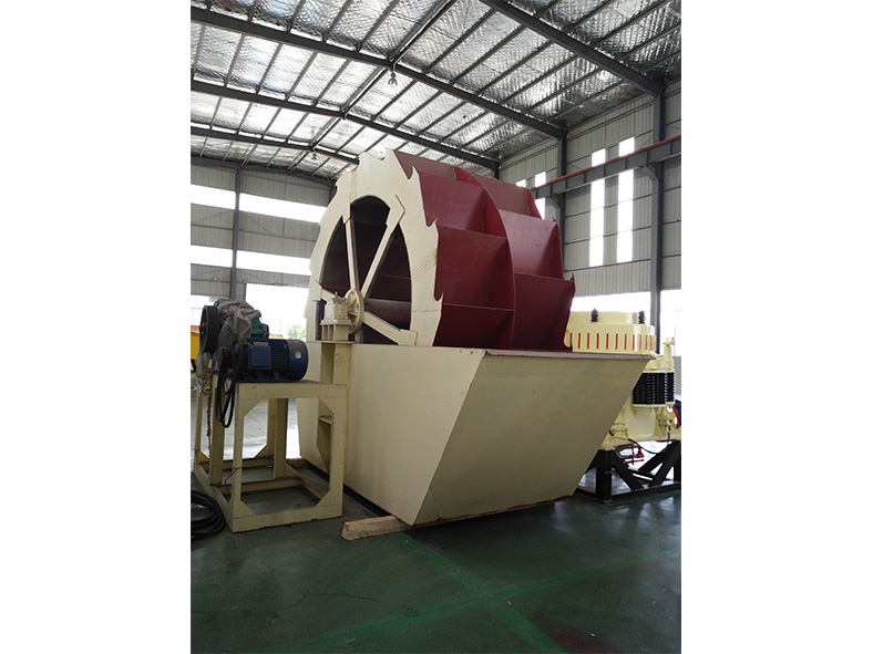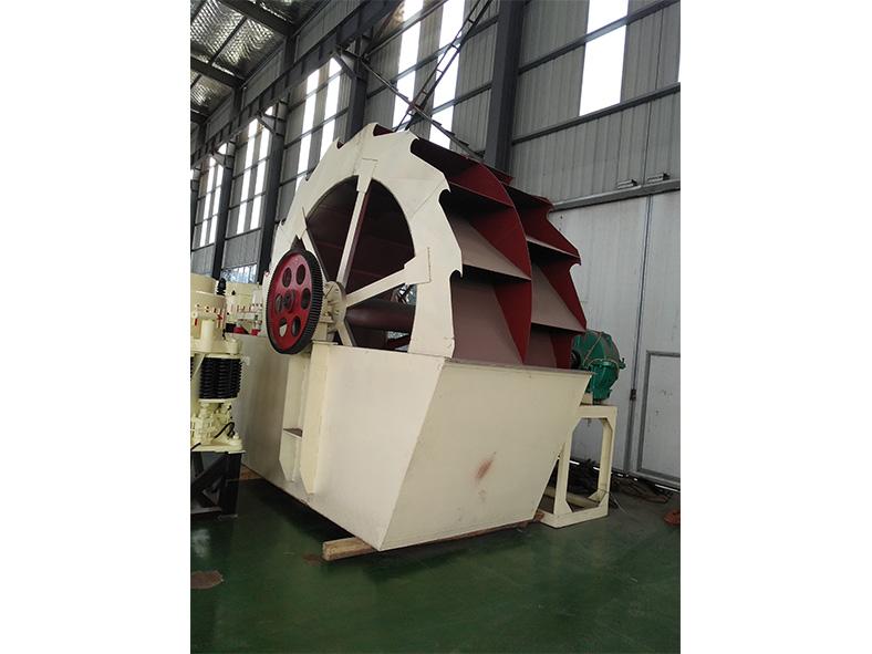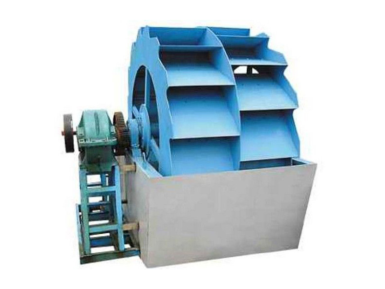 工作時,電機通過三角帶、減速機、齒輪減速后帶動葉輪緩慢轉動,砂石有給料槽進入洗槽中,在葉輪的帶動下翻滾,并互相研磨,除去覆蓋砂石表面的雜質,同時 破壞包覆砂粒的水汽層,以利于脫水;同時加水,形成強大水流,及時將雜質及比重小的異物帶走,并從溢出口洗槽排出,完成清洗作用。干凈的砂石由葉片帶走,  后砂石從旋轉的葉輪倒入出料槽,完成砂石的清洗作用。